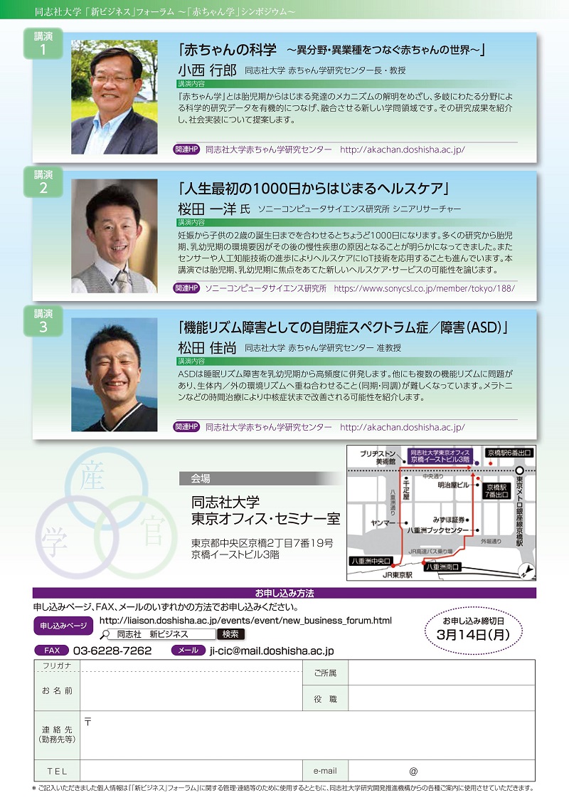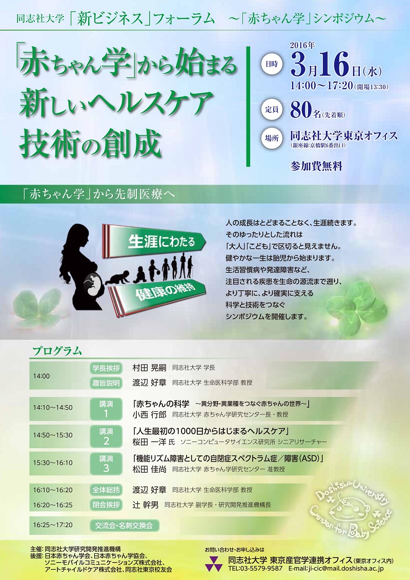 校友のひろば【 同志社大学 「新ビジネス」 フォーラム 】 ~「赤ちゃん学」シンポジウム ~