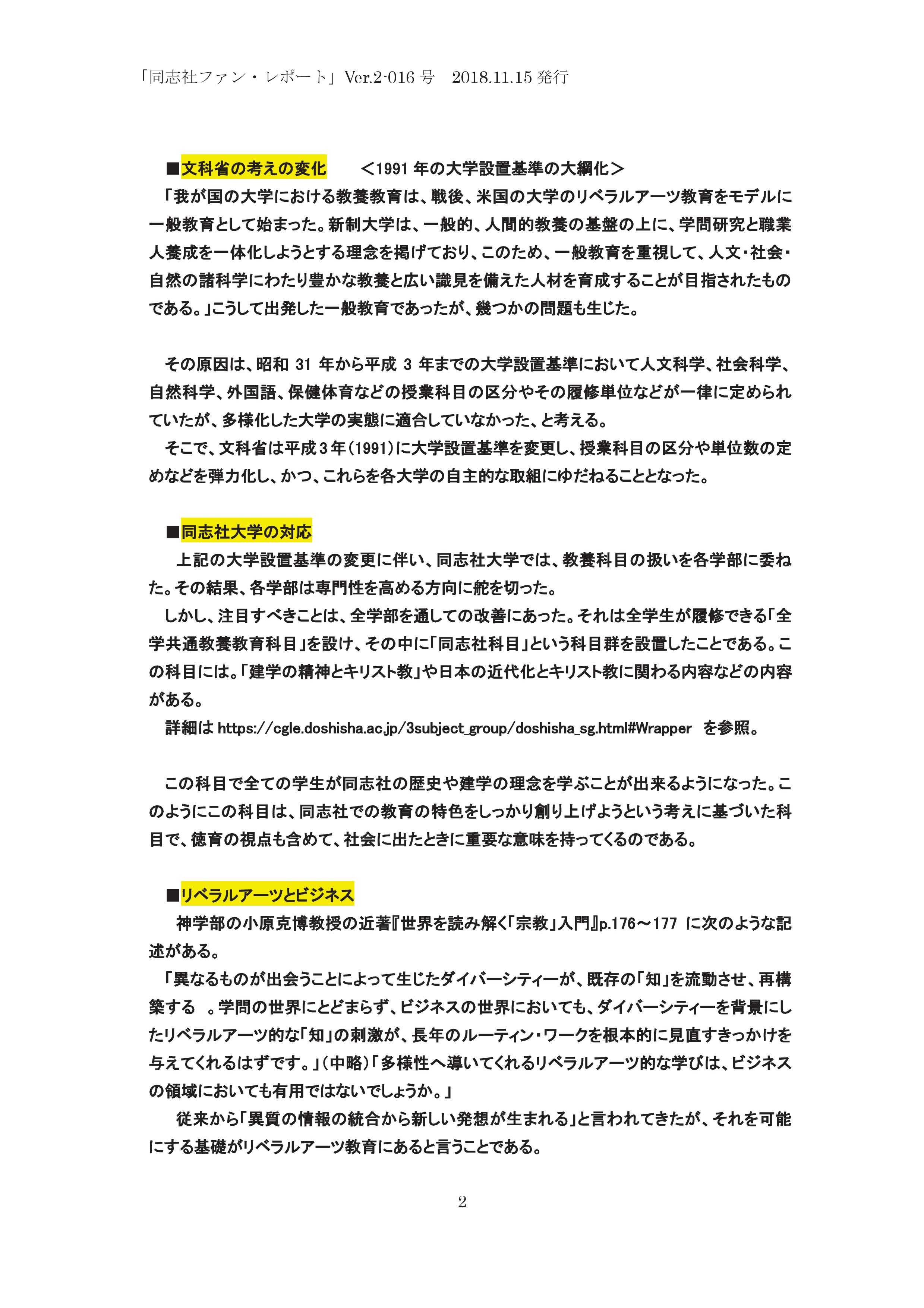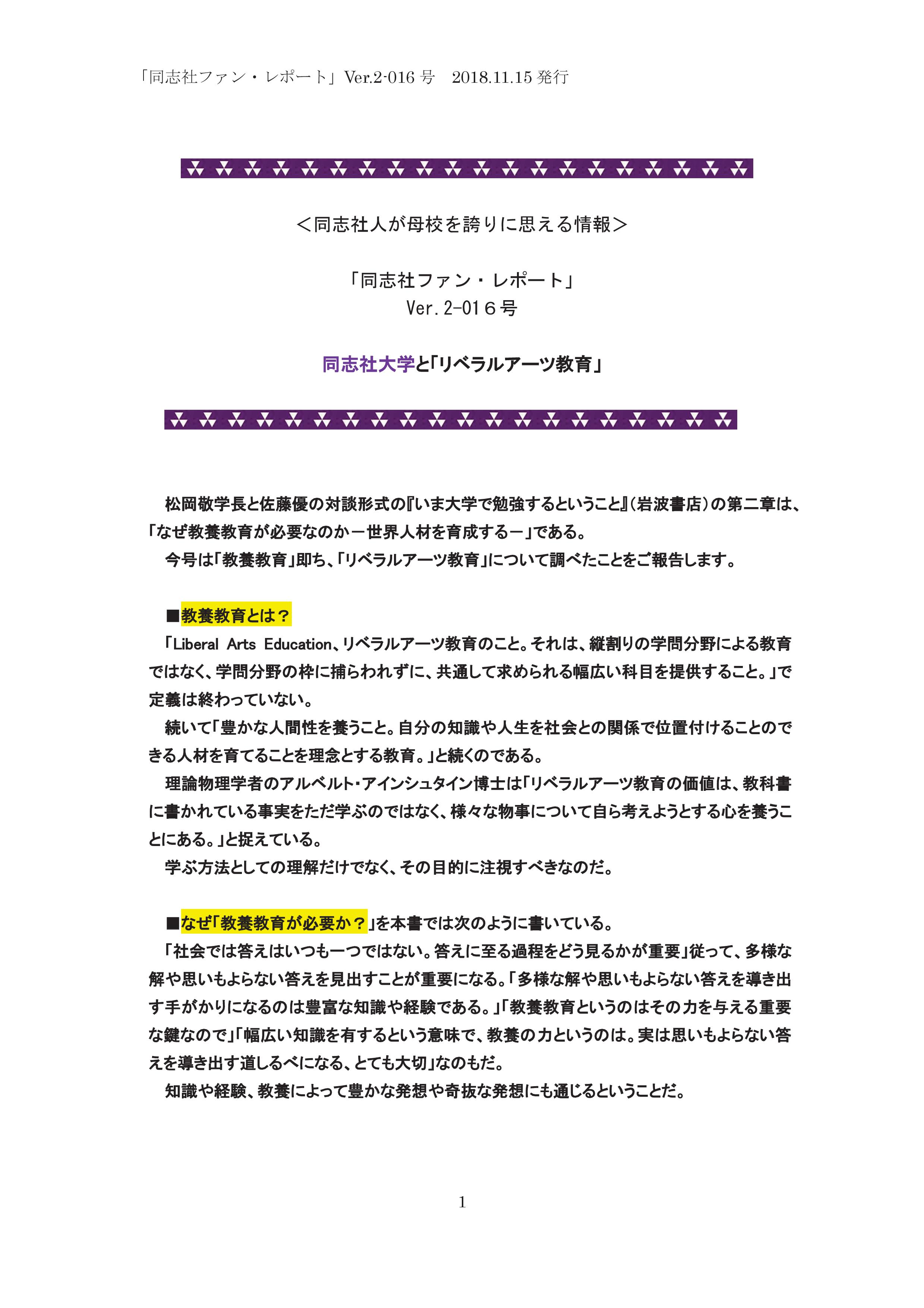 同志社大学と「リベラルアーツ教育」 Ver.2-016 2018/11/15発行