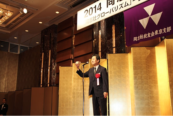 続いて学校法人同志社総長の大谷寛氏と同志社校友会会長の井上礼之氏の来賓挨拶。