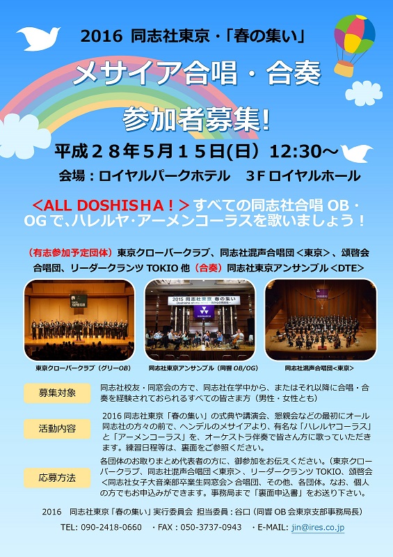 【2016同志社東京・春の集い】 メサイア合唱・合奏 参加者募集!