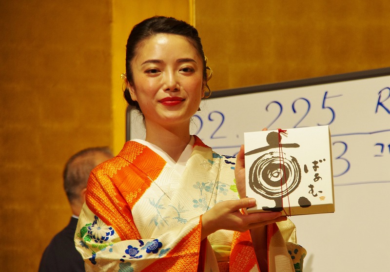 抽選会のプレゼンターは、今年も女優の小川夏果さん(法学部卒)