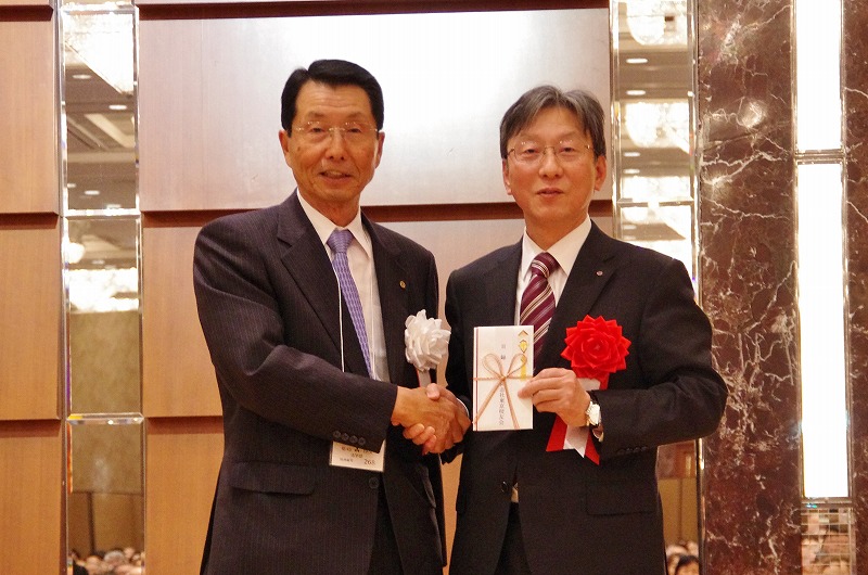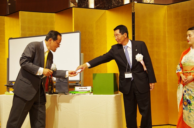 児玉会長から松岡学長へ「東京校友会奨学金」目録の贈呈