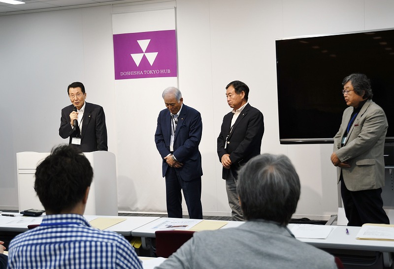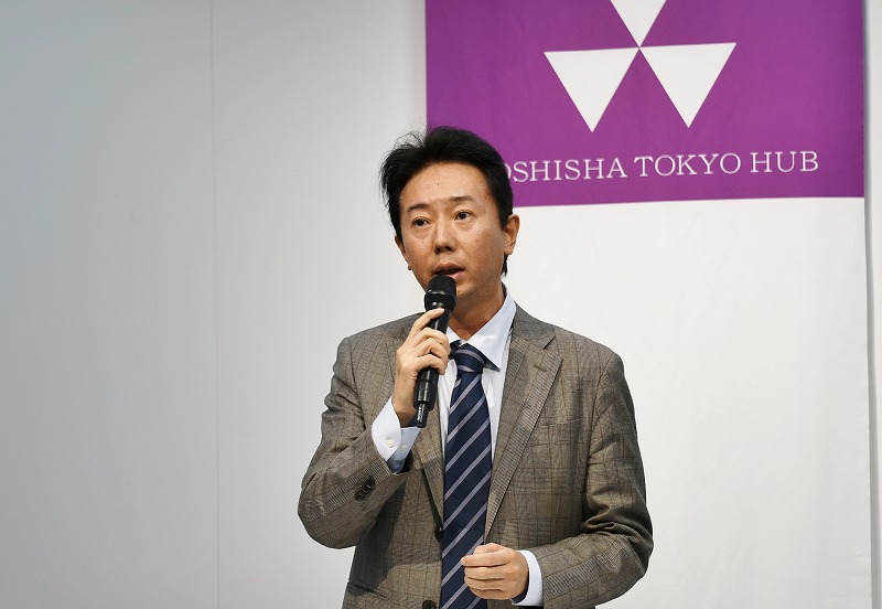 同志社メディアクローバー会の河内一友会長、政策学部の多田実教授からご祝辞をいただきました。