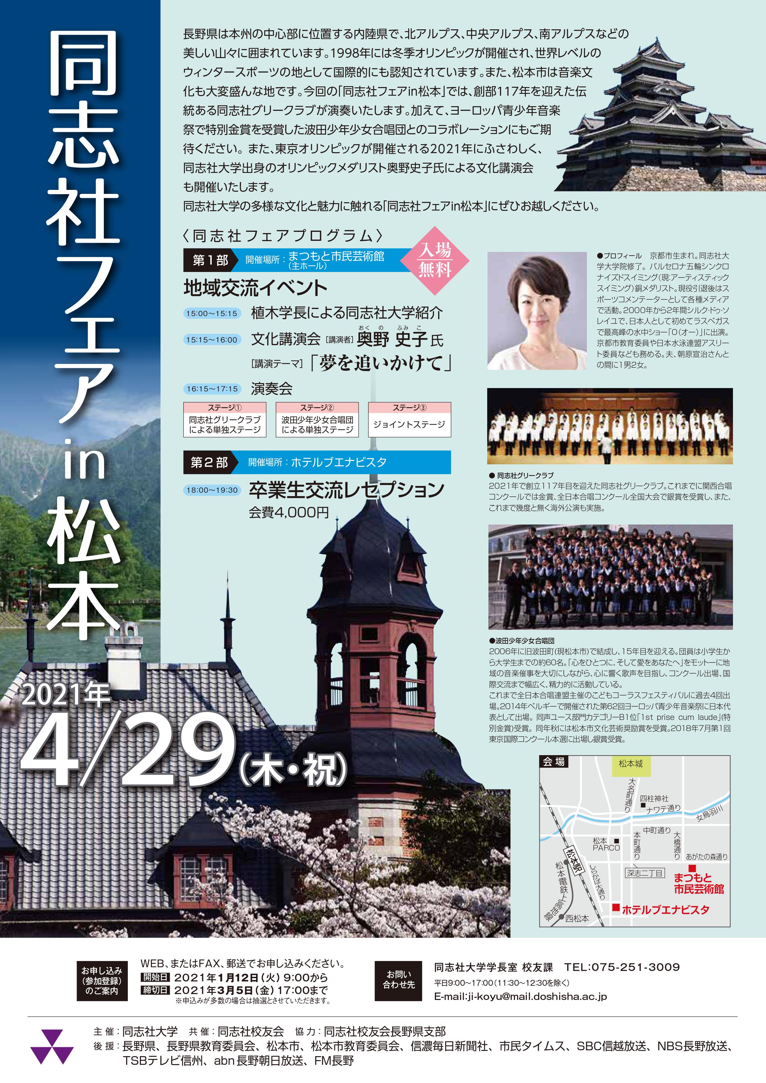 4月29日(木・祝)に開催が予定されていた「同志社フェアin松本」は、