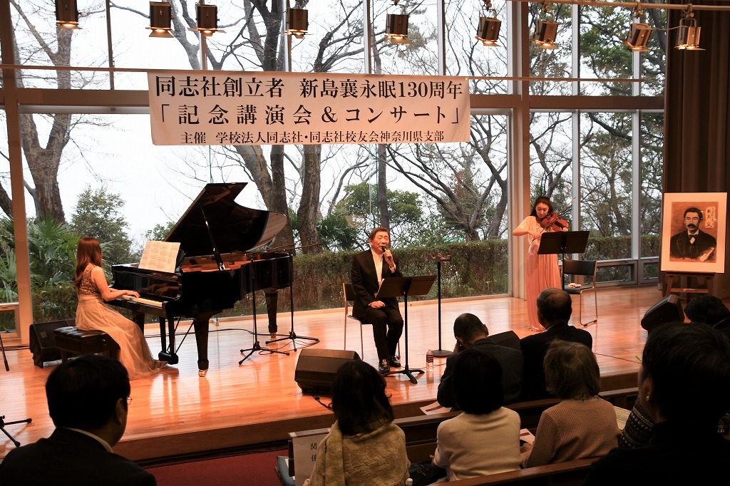 続いて、今年は「新島襄永眠130周年」ということから、会場を「聖ステパノ学園・海の見えるホール」に移して、記念講演会&コンサートが開催されました。