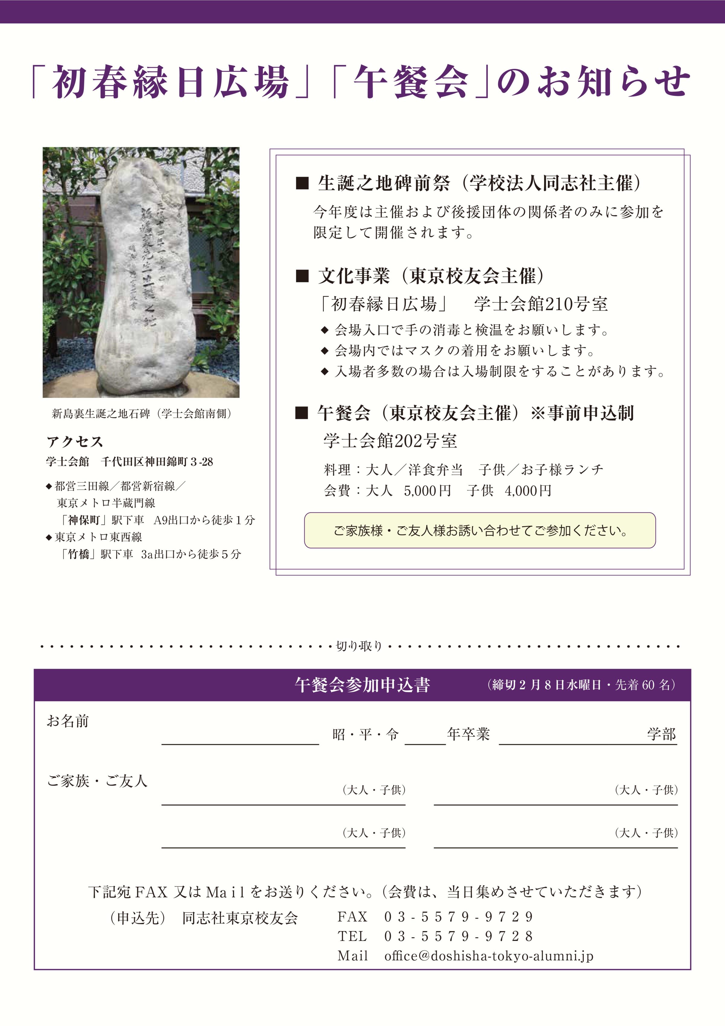 新島襄生誕の地碑前祭・初春縁日広場・午餐会のご案内 【 2月12日(日)】