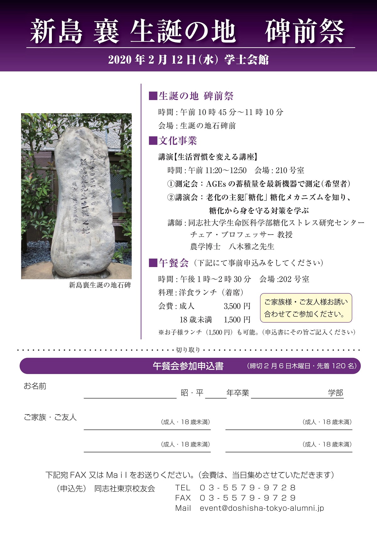 新島襄生誕の地碑前祭・講演会・午餐会のご案内 【 2月12日(水)】