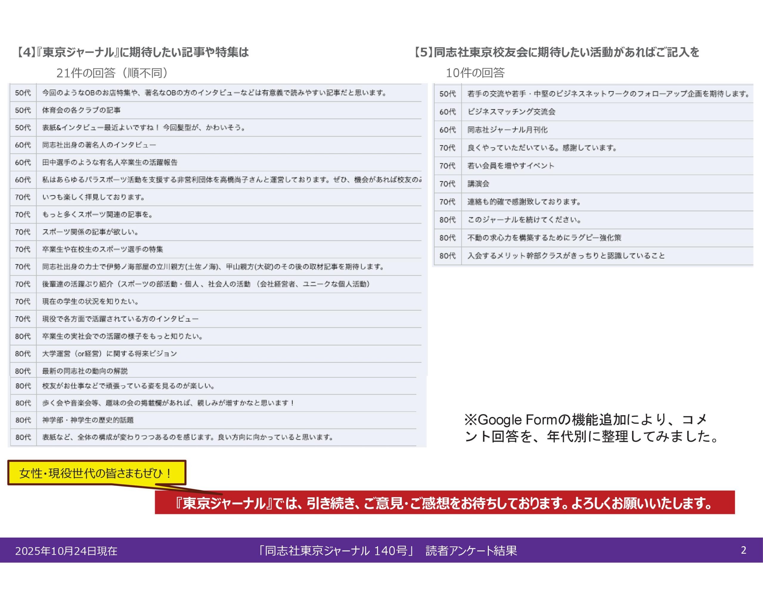 同志社東京ジャーナル140号(2025年7月) アンケート結果