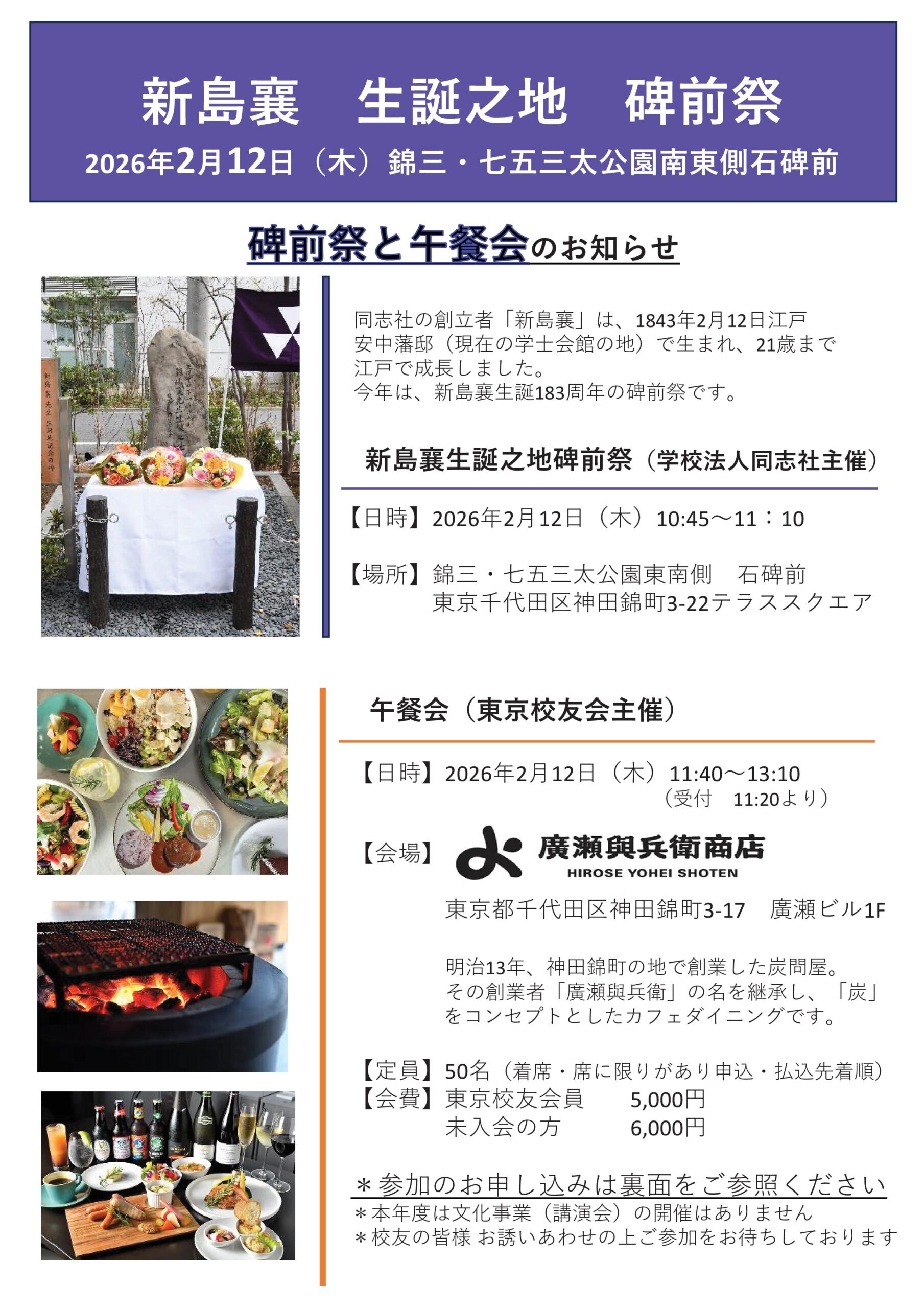 3. 【新島襄 生誕之地】碑前祭・午餐会のご案内 【2月12日(木)】