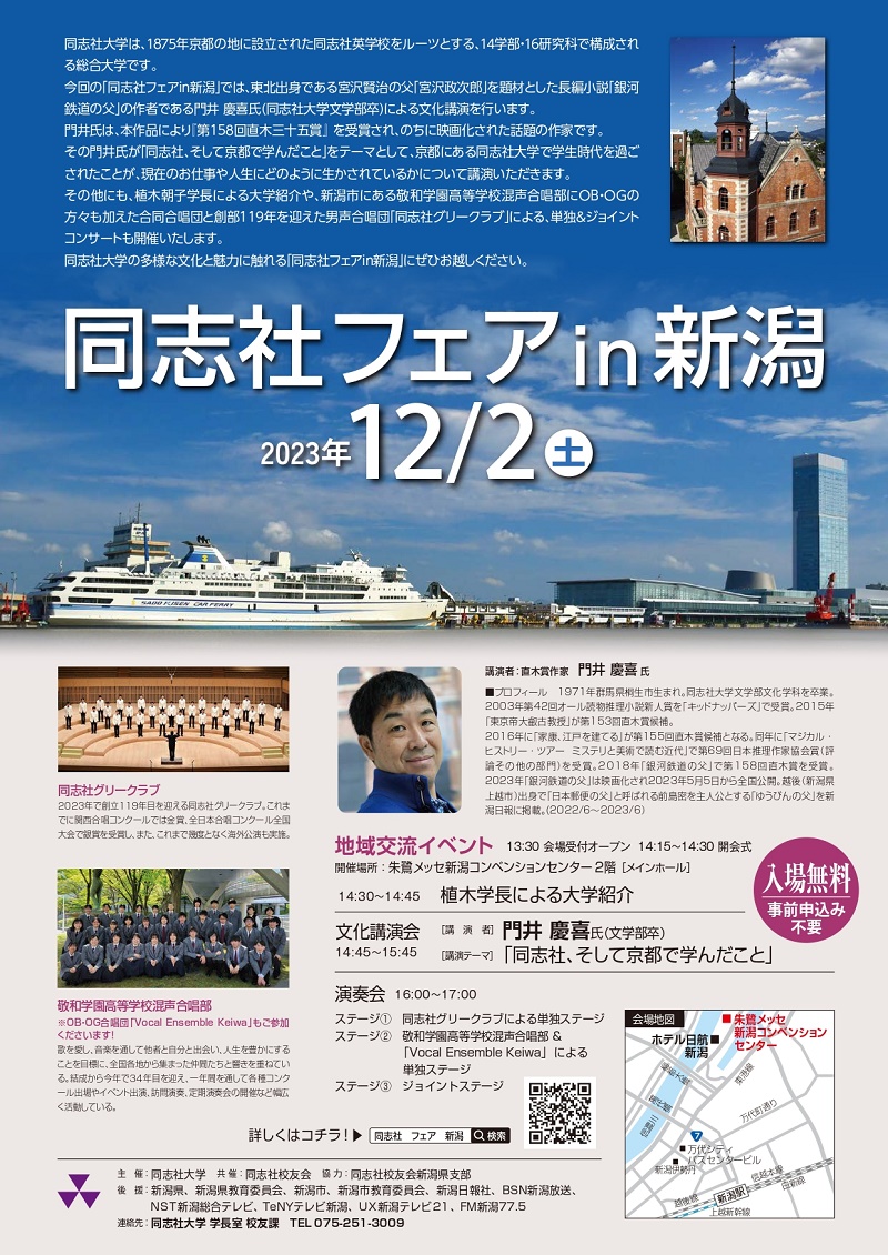 主催:同志社大学 共催:同志社校友会 協力:同志社校友会新潟県支部